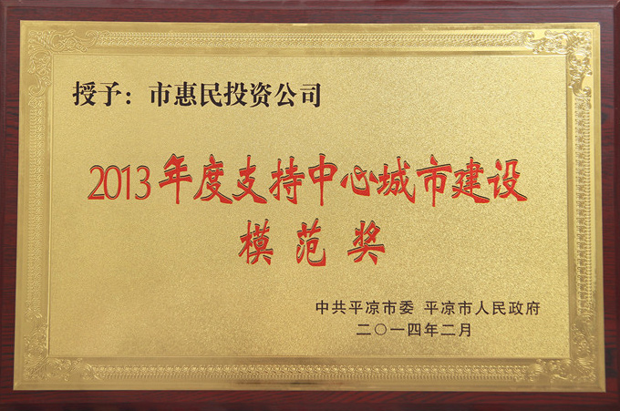 2013年度支持中心城市建設(shè)模范獎